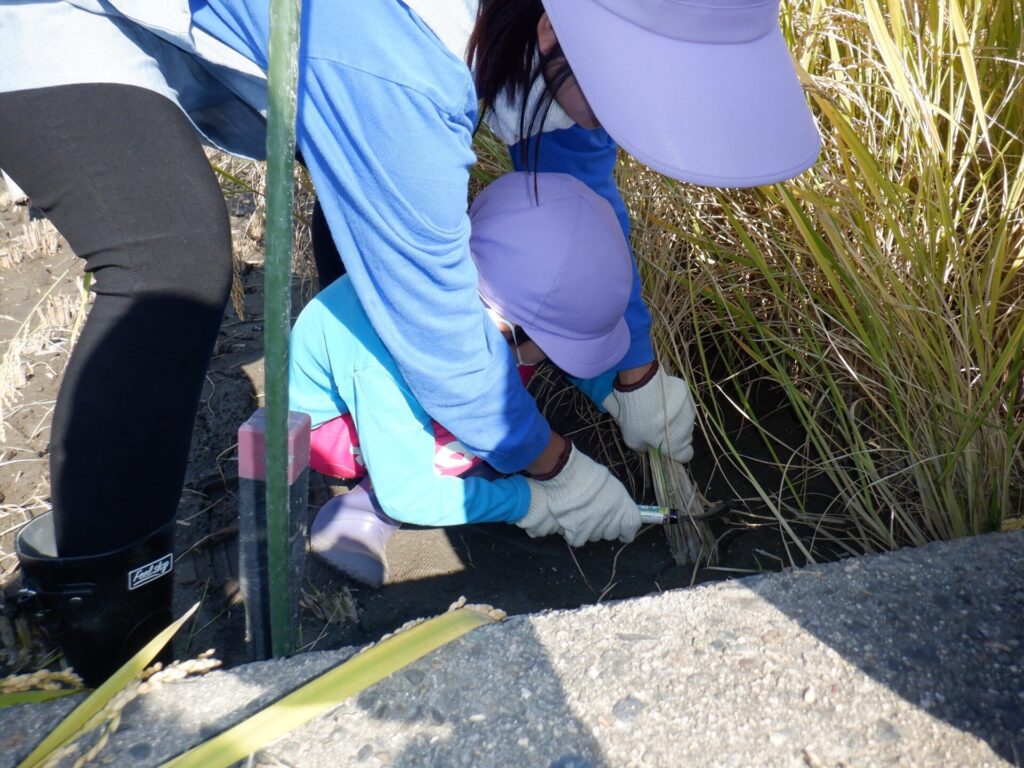 稲穂の様子を見に