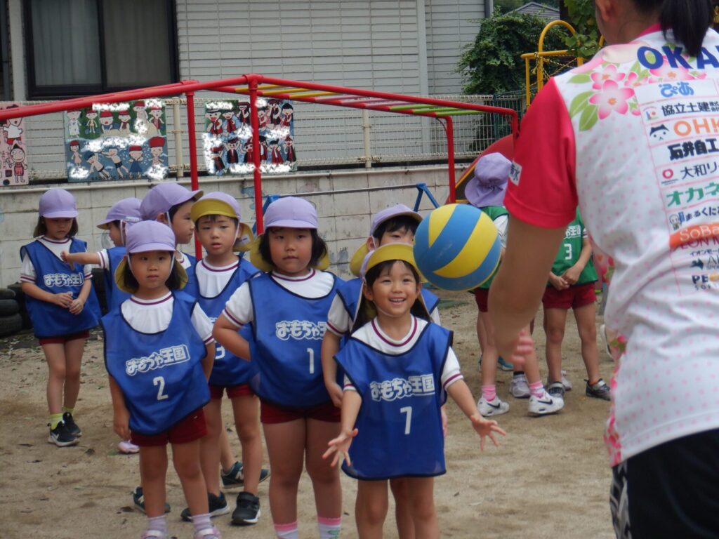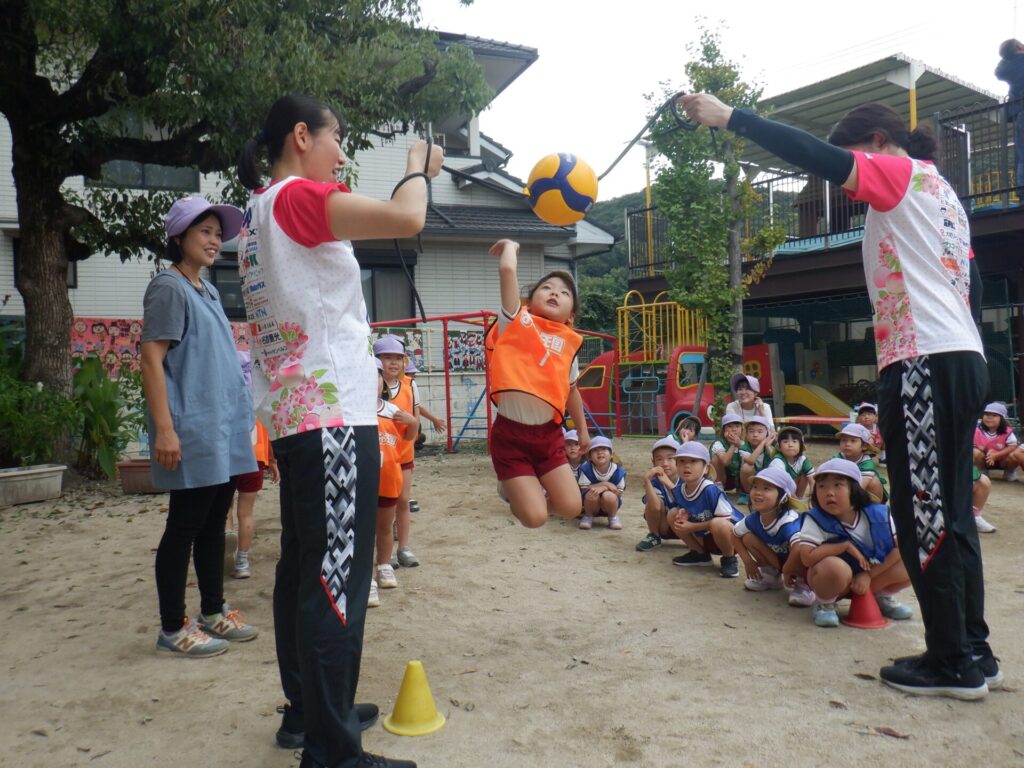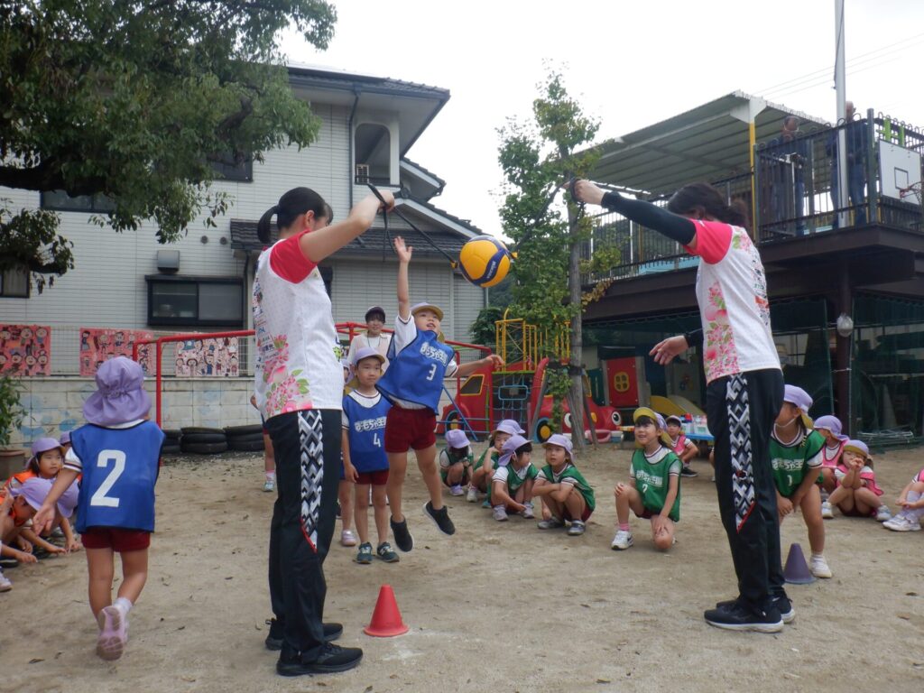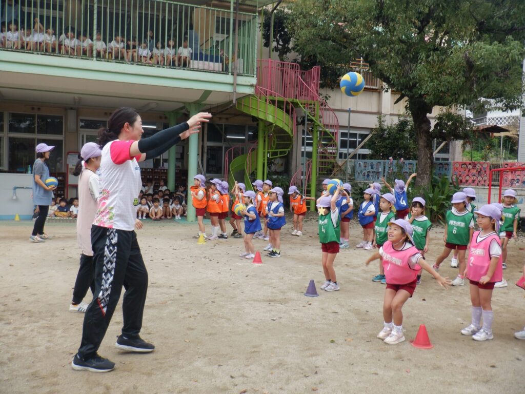 日々のできごとふじぐみ 2025年10月15日 シーガルズ🏐運動教室 岡山シーガルズの 神田コーチと岡野選手が ゆりかご保育園に 来てくださいました😊 楽しい経験となりました✨ ありがとうございました😆